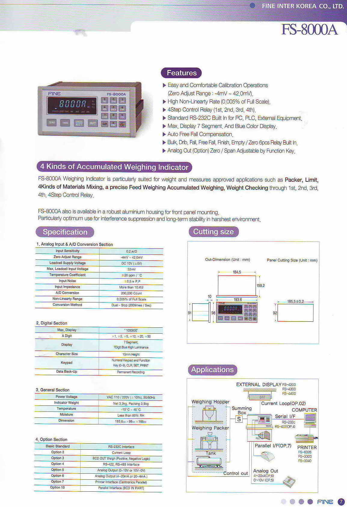 產(chǎn)品名稱:韓國(guó)Fine稱重顯示儀表,稱重顯示儀表FS-8000,顯示儀表FS-8000,F(xiàn)S-8000