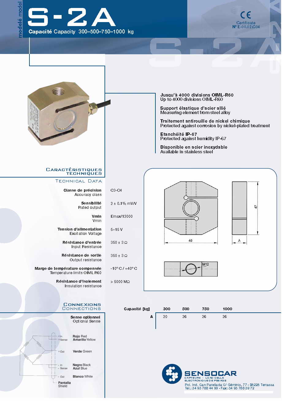 西班牙Sensocar稱重傳感器及稱重儀器系列