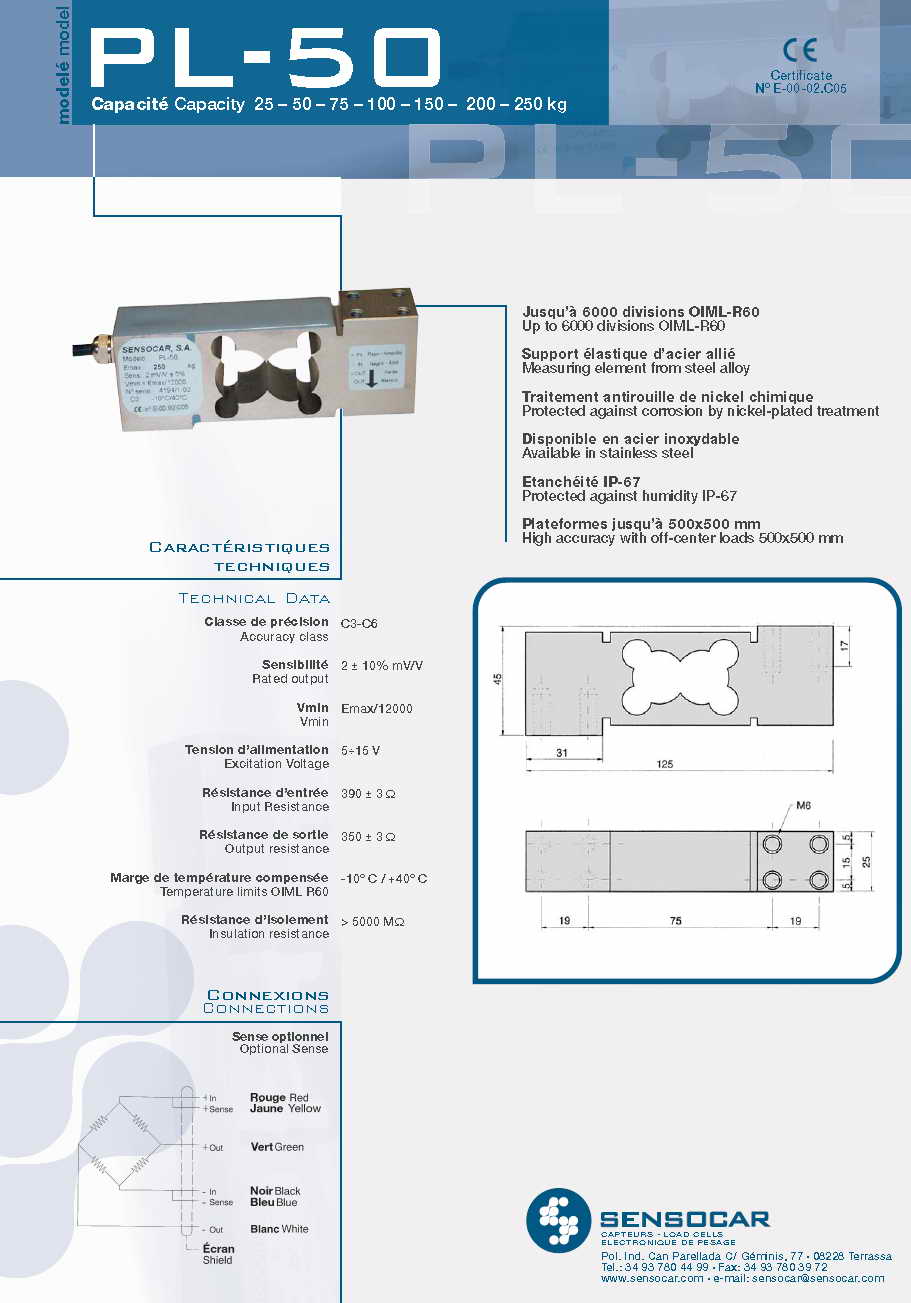 Sensocar PL50 單點式稱重傳感器(load cells)