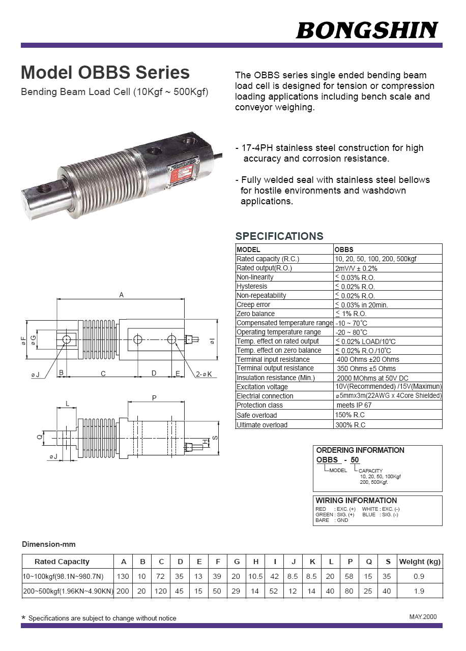 OBBS 波紋管稱重傳感器(load cell)