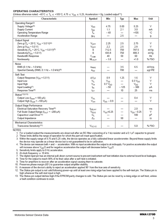 MMA1270D 加速度傳感器(accelerometer)