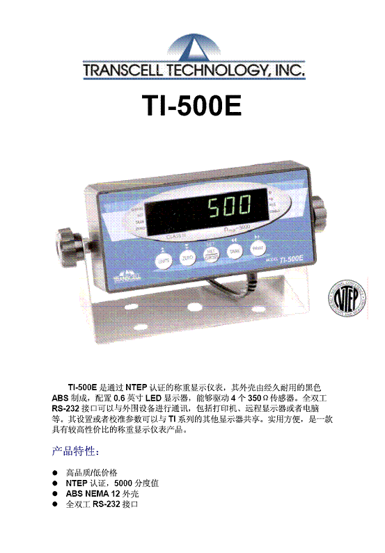 Transcell T1-500E 稱重顯示儀表(Indicator)
