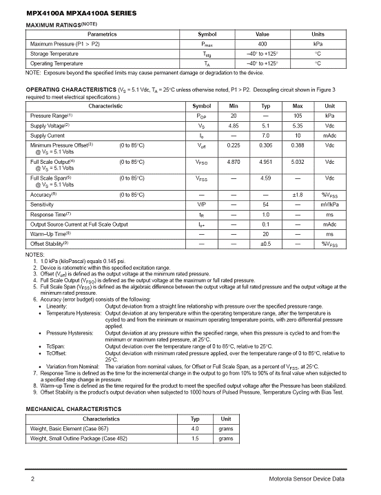 MPX4100A 氣壓傳感器(sensor)