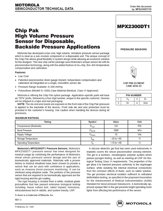 產(chǎn)品名稱(chēng):MPX2300DT1 氣壓傳感器(sensor)