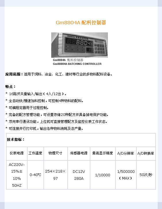 Gm8804A 配料控制器(Indicator)