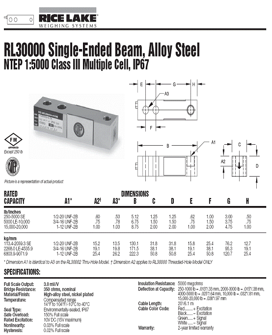 產(chǎn)品名稱:RL30000 懸臂梁稱重傳感器(load cells)