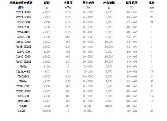 壓阻加速度傳感器 型號 2262A-1000 2262A-2000 7231C-750 7264-200 7264-2000 7264B-500
